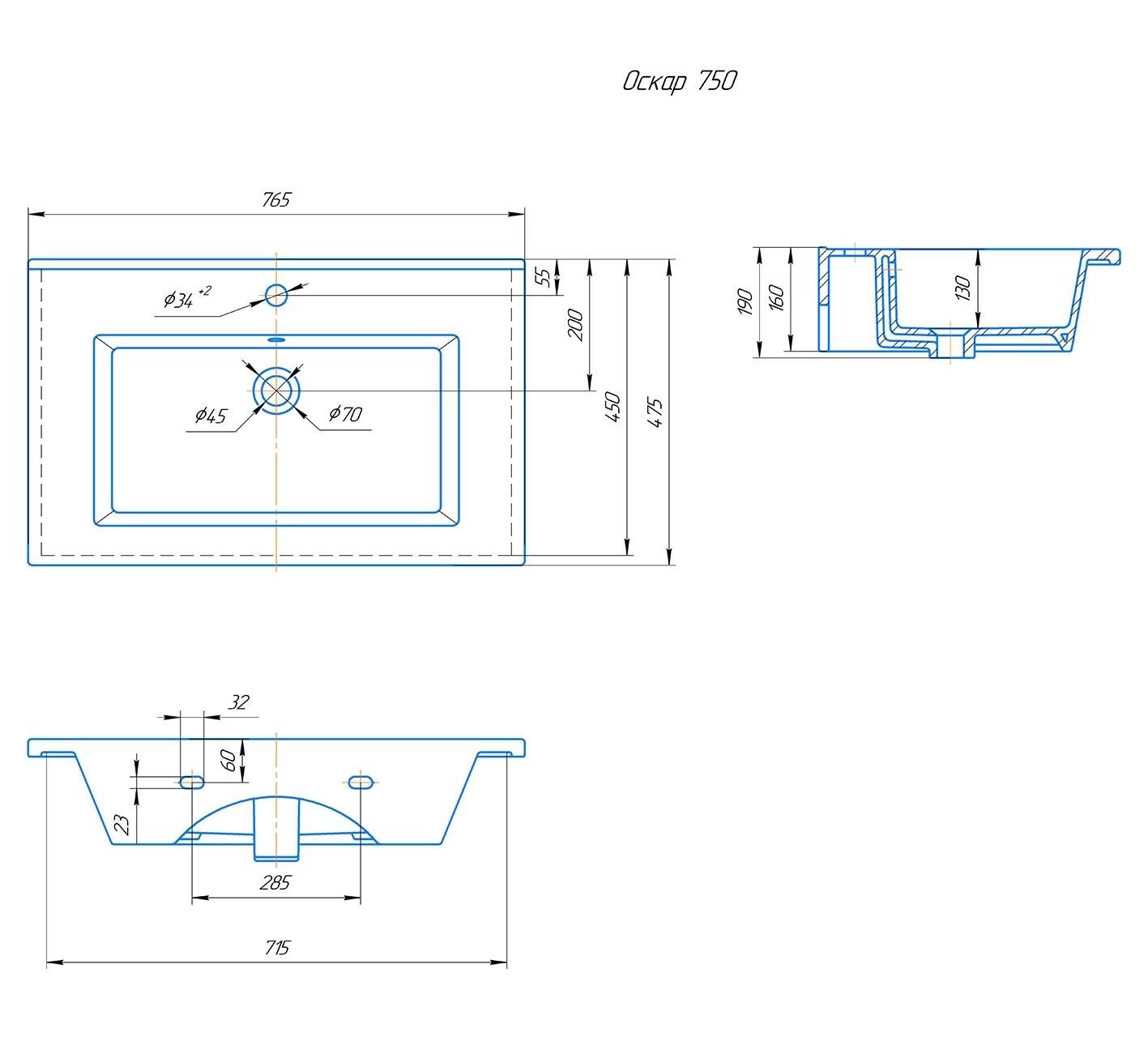 Раковина Kirovit Оскар 75 см купить