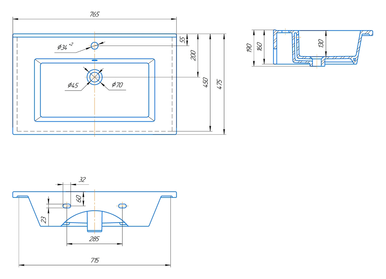 Размер, мм (ШxГxВ): 765x475x190
