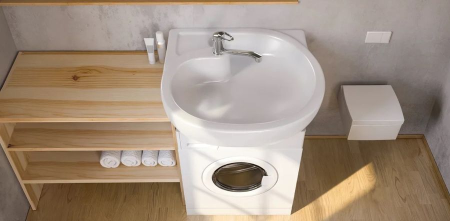 - Раковина устанавливается над стиральной машиной