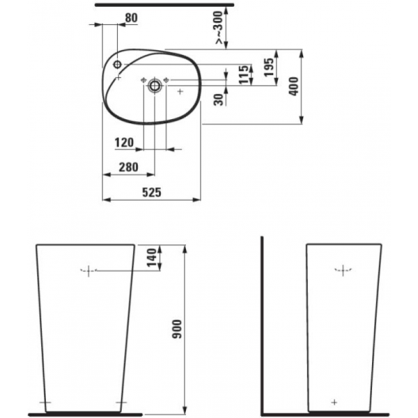 Palomba collection 52,5х40х90см, напольная раковина, санфарфор, свободностоящая, с 1 отв. под смеситель, арт. 8.1180.3.000.104.1, Laufen