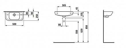 Pro B 50х25см, раковина, санфарфор, подвесная, отверстие под смеситель слева, арт. 8.1695.7.000.105.1, Laufen