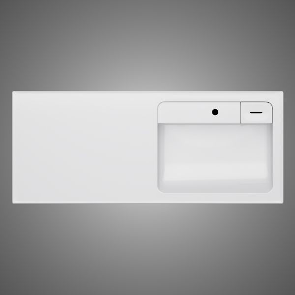 Дизайнерская раковина из литьевого мрамора белоснежного цвета с бортиком, скрытым сливом и съемной мыльницей. Раковина оснащена просторной столешницей, на которой можно разместить косметические и гигиенические средства. Столешница защищает стиральную машину от повреждений и механических воздействий.