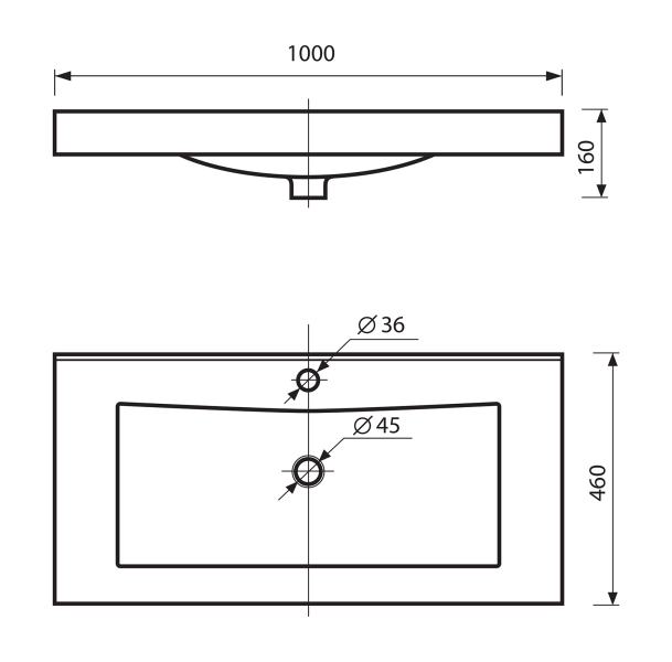 Тип: раковиныПо форме: прямоугольныеРазмер, мм (ШxГxВ): 1000x460x160Размер в упаковке, мм (ШxГxВ): 1030x490x190Цвет: белыйВес с упаковкой, кг: 24По монтажу: мебельнаяМатериал: искусственный камень