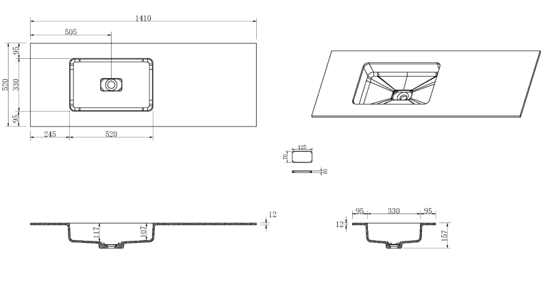 - Габариты (ШхВхГ): 1410х157х520 мм..
