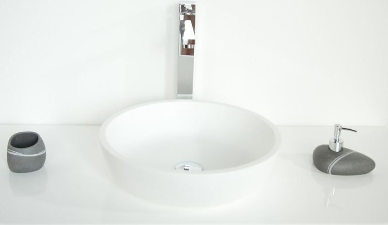 Раковина из искусственного камня для ванной комнаты круглой формы. Способы установки - на поверхность столешницы или мебели накладным способом сверху или же путем вклейки в столешницу любого цвета, создавая цельную поверхность, смотрится как единое изделие. Последняя особенность расширяет границы использования Isola Bella: вариации цветового решения столешницы, ее размера и формы позволяют реализовать любую дизайнерскую задумку. Модель имеет небольшую высоту и относится к категории компактных решений. Используется в том числе в общественных пространствах, где сразу несколько раковин размещаются на единую столешницу. Isola Bella имеет матовую, бархатистую поверхность. Полимерный материал принимает температуру окружающей среды, поэтому в жилом пространстве данная модель раковины всегда будет приятной на ощупь.