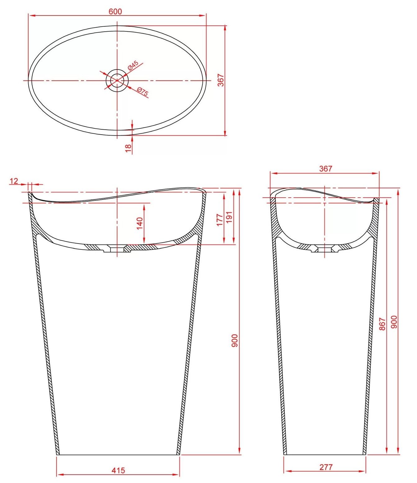 ДxШxВ: 600x367x900 мм