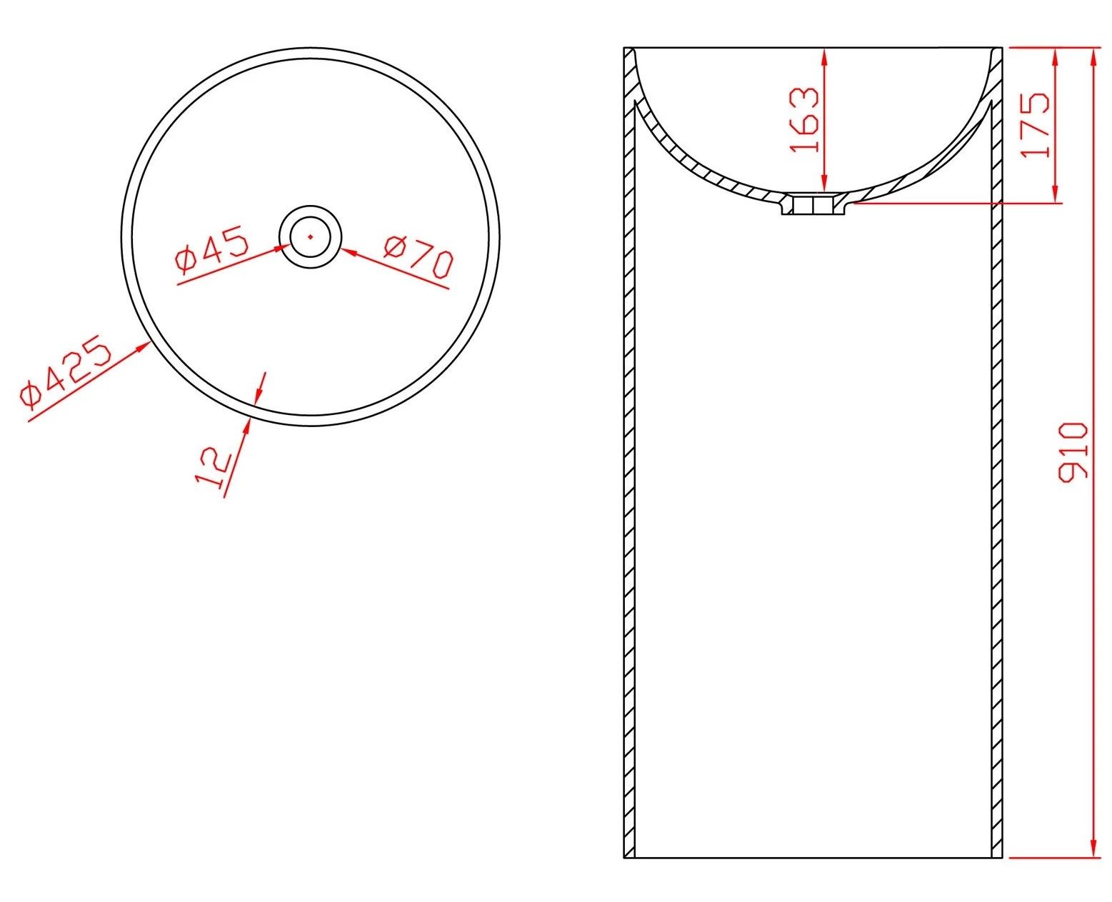 ДxШxВ: 425x425x910 мм