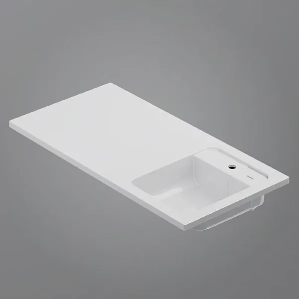 Раковина над стиральной машиной Am.Pm X-Joy M85AWPR1001WG 100 см белыйДолгожданное расширение в мебели X-Joy. Самое оптимальное и функциональное решение для организации пространства ванной комнаты с учетом размещения в ней стиральной машины. Подходит для интеграции с узкими стиральными машинами (глубиной от 32 до 45 см). Дизайнерская раковина из литьевого мрамора белоснежного цвета с бортиком скрытым сливом и съемной мыльницей. Раковина оснащена просторной столешницей на которой можно разместить косметические и гигиенические средства. Столешница защищает стиральную машину от повреждений и механических воздействий. Раковина совместима с тумбой X-Joy - M85AFSX0402WGБрендAM.PM