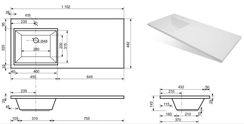 Материал:литьевой мрамор