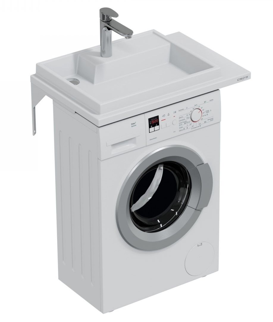 Главный плюс установки раковины над стиральной машиной – это экономия места в маленькой ванной комнате, особенно если площадь не превышает 2-3 м2. Это выход для санузлов в небольших студиях, а также квартирах современных новостроек и в хрущевках, где на кухне чаще всего тоже нет места под стиральную машинку.Раковины, предназначенные для установки над стиральными машинами, обычно называют «кувшинками». Сливное отверстие у этих раковин расположено не в центральной части, как у большинства обычных умывальников, а ближе к задней стороне чаши, что не мешает установке стиральной машины.Также есть варианты раковин для стиральной машины со столешницей и тумбой.В наших моделях тумбы установлены под сливом раковины, а под крылом можно расположить стиральную машину. Также у нас в ассортименте есть вариант раковины столешницы, где тумба устанавливается со стороны крыла.Одним из таких вариантов является раковина- столешница над стиральной машиной СаНта Юпитер 75. Изготовлена она из литьевого мрамора.Максимально возможная глубина стиральной машины до 35 см.При использовании гофросифона до 37 см.Возможна погрешность на размерах раковины на 0.5 мм.Кронштейны приобретаются отдельно.В случае, если умывальник будет устанавливаться без тумбы — необходимо приобретать комплект из 2 кронштейнов (правый и левый).Данную модель раковины можно укомплектовать тумбой по вашему желанию:700318 Тумба напольная СаНта Луна 13 с 1 распашной дверьюЕсли умывальник приобретается в комплекте с тумбой, то к правосторонним умывальникам приобретается правый кронштейн, к левосторонним умывальникам — левый кронштейн. ).*Правый умывальник — чаша справа, левый умывальник — чаша слева. Артикулы кронштейнов : 900122, 900123.