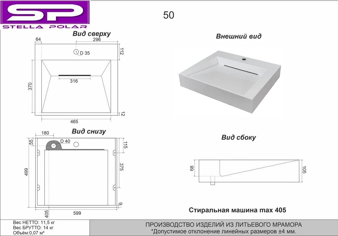 Раковина над стиральной машиной Stella Polar Берта SP-00001696 60см белый мрамор Раковина над стиральной машиной Stella Polar Берта SP-00001696 60см белый мрамор Казань 11236.61 14593.00 Stella Polar