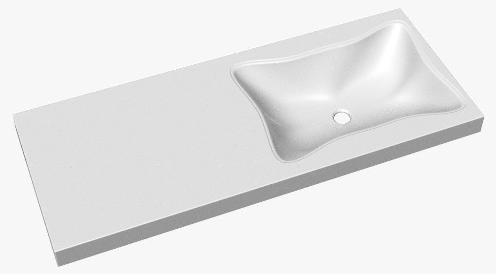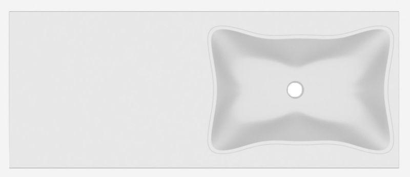Очень необычная раковина в ванную комнату, как по дизайну, так и по форме. Может быть установлена как справа, так и слева. Может быть использована для установки над стиральной машинкой. Крепится на кронштейны, которые не входят в комплект поставки. Верхний слой высококачественного гелькоута образует декоративно-защитное покрытие. Отверстие под смеситель может быть сделано самостоятельно, как справа, так и слева. Для этого в комплекте идет фреза для сверления.