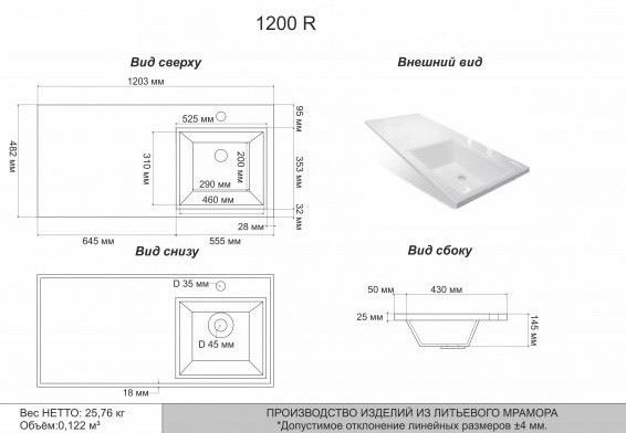 Раковина над стиральной машиной Stella Polar Мадлен 120 R белый SP-00000027 купить