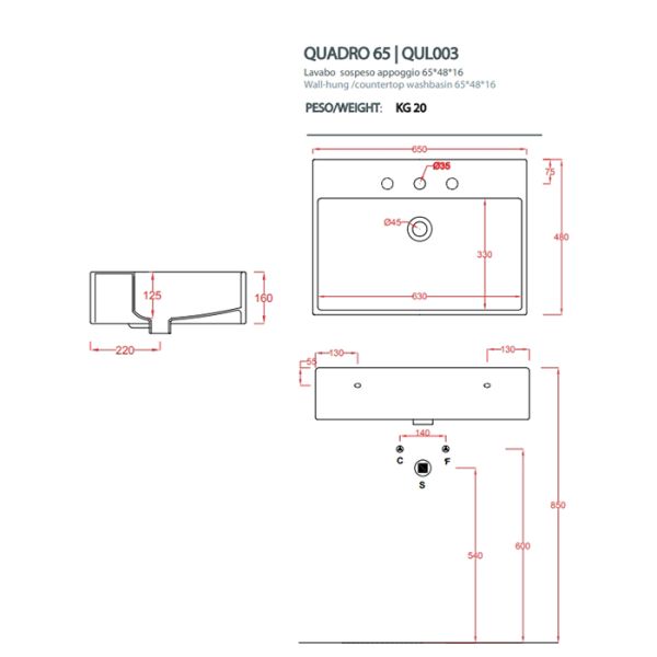 Раковина накладная ArtCeram QUADRO QUL003 01 00 белая 65x48 смArtCeram Quadro QUL003 01 00 Раковина универсальная, с переливом, одно отверстие под смеситель готово. Размер 65х48х16 см. Установка раковины на стену, на столешницу или на мебельную консоль (заказывать дополнительно). Цв. белый глянцевый.