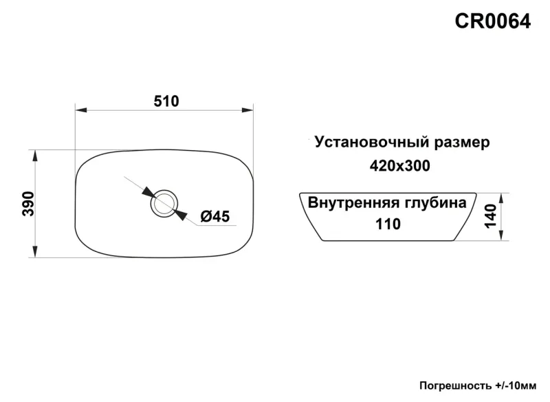 Раковина накладная Ceruttispa CR0064 51см белый купить