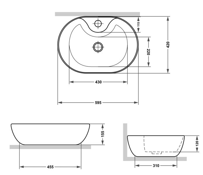 Раковина с отверстием под смеситель; с отверстием перелива.