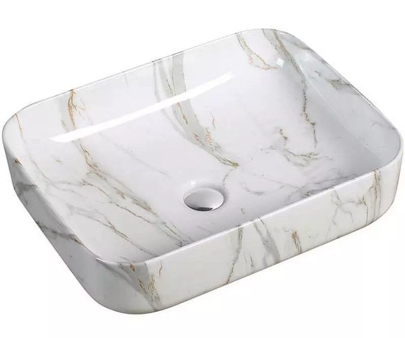 Раковина накладная SantiLine SL-7020 50см светло-серый мрамор купить