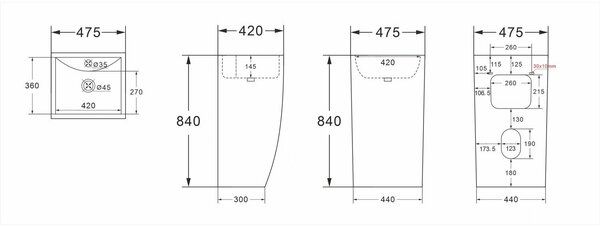 Раковина напольная AZARIO COMELLA 48 AZ-314 отдельностоящая прямоугольная, белый 480х420х830