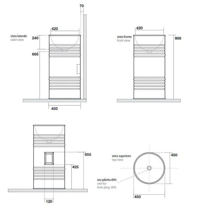 Раковина напольная Kerasan Artwork Barrel 474301 45см слив в стену белый купить