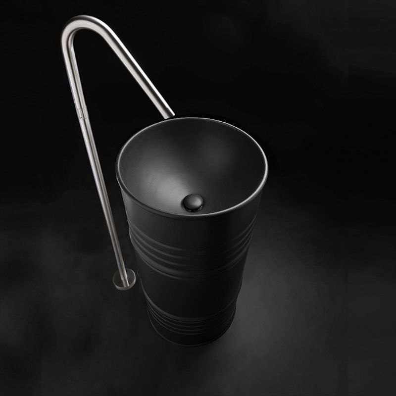 Раковина напольная Kerasan Artwork Barrel 474331 45см слив в стену чёрный матовый купить