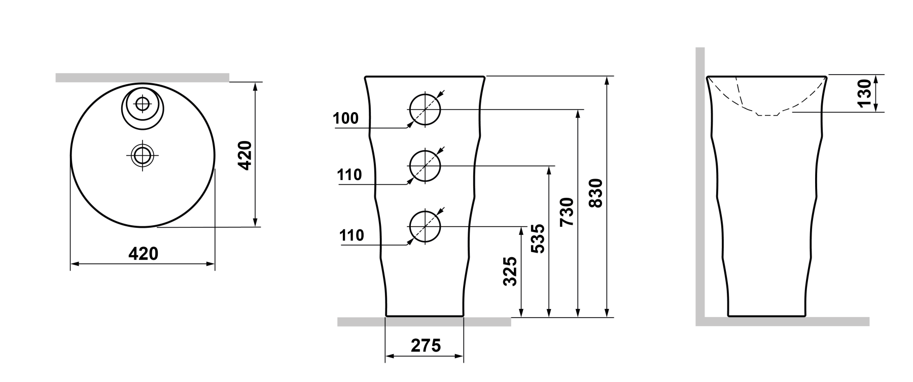 Высота раковины: 830 мм