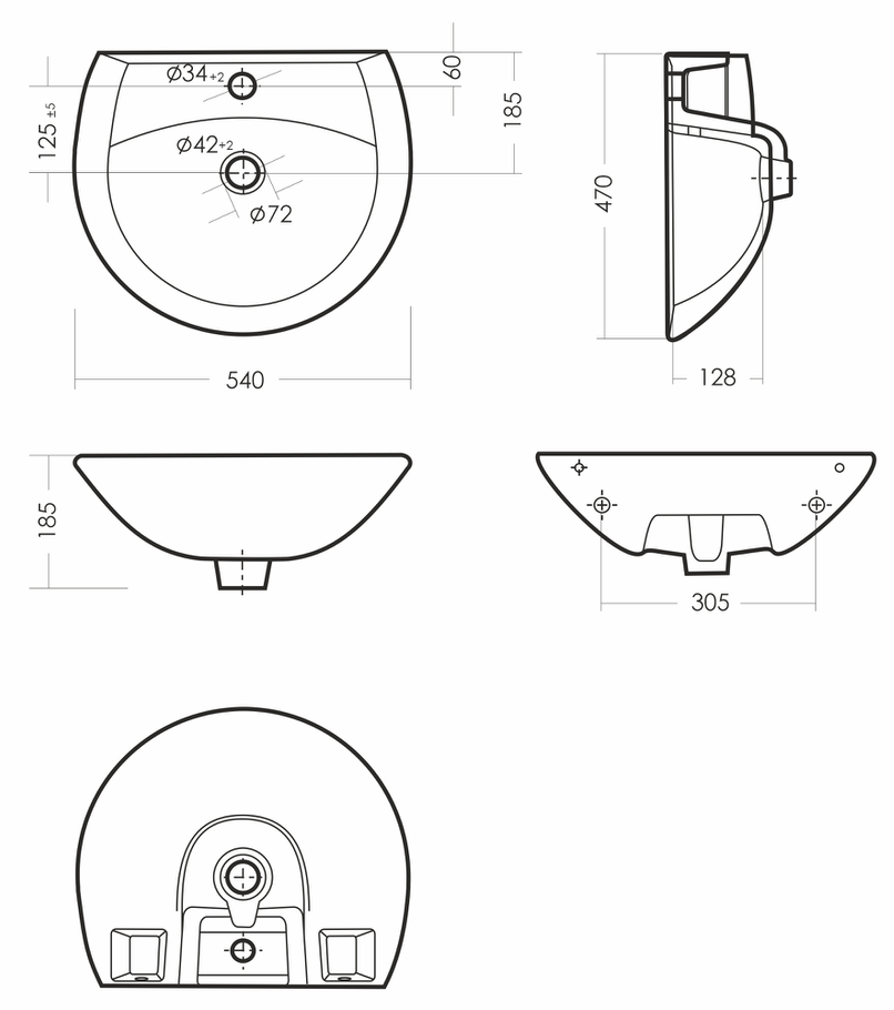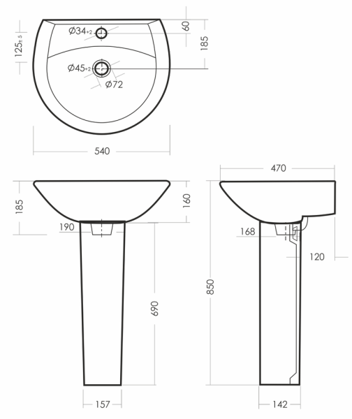Размеры умывальника 540 x 470 x 185
