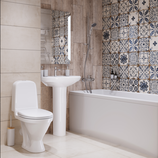 Он имеет глубокую функциональную чашу и полочку с небольшими бортиками, которые не позволяют воде вытекать.