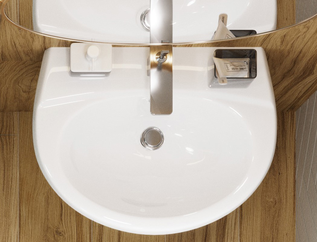Сбалансированные формы отличают дизайн коллекции ВИКТОРИЯ. Умывальник ВИКТОРИЯ располагается на пьедестале, имеет базовый размер 60 сантиметров и функциональную широкую полочку, на которой можно расставить ванные принадлежности.