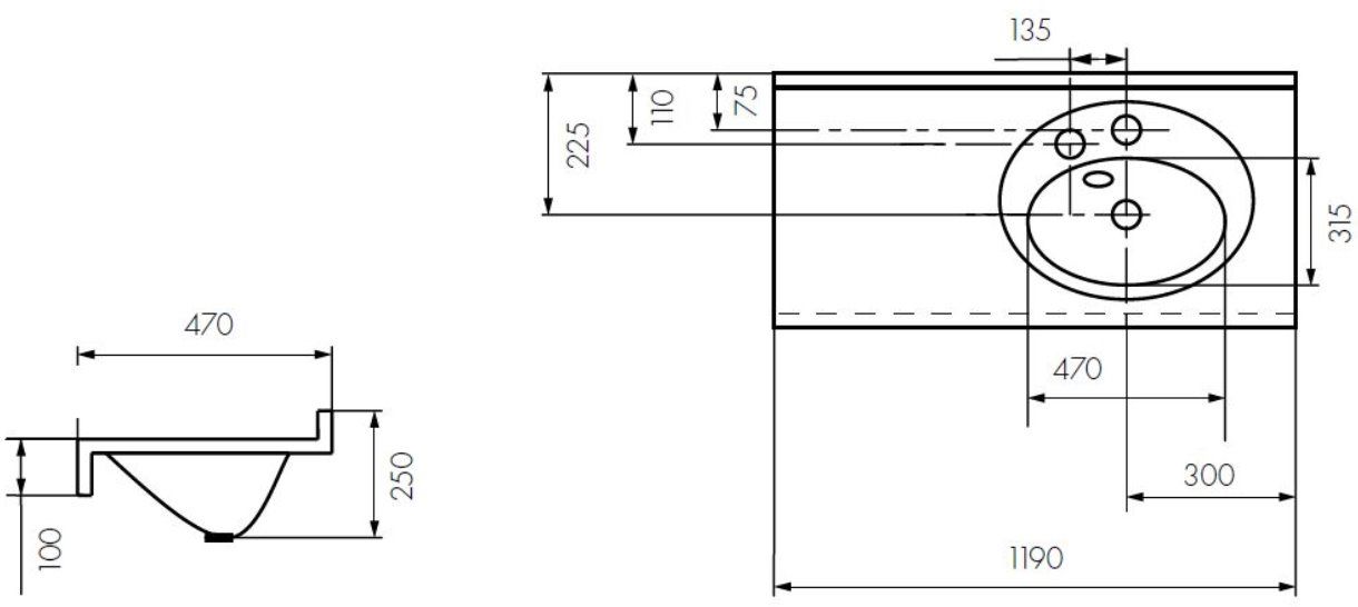 Раковина подвесная Акватон Отель правая 120см белый 1A70103NOT01R купить