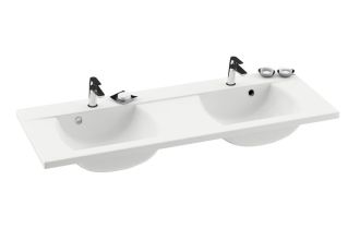 Предлагает удобное моющее пространство и место для вещей для сразу для двух пользователей. Классический дизайн хорошо смотрится в любой современной ванной комнате.