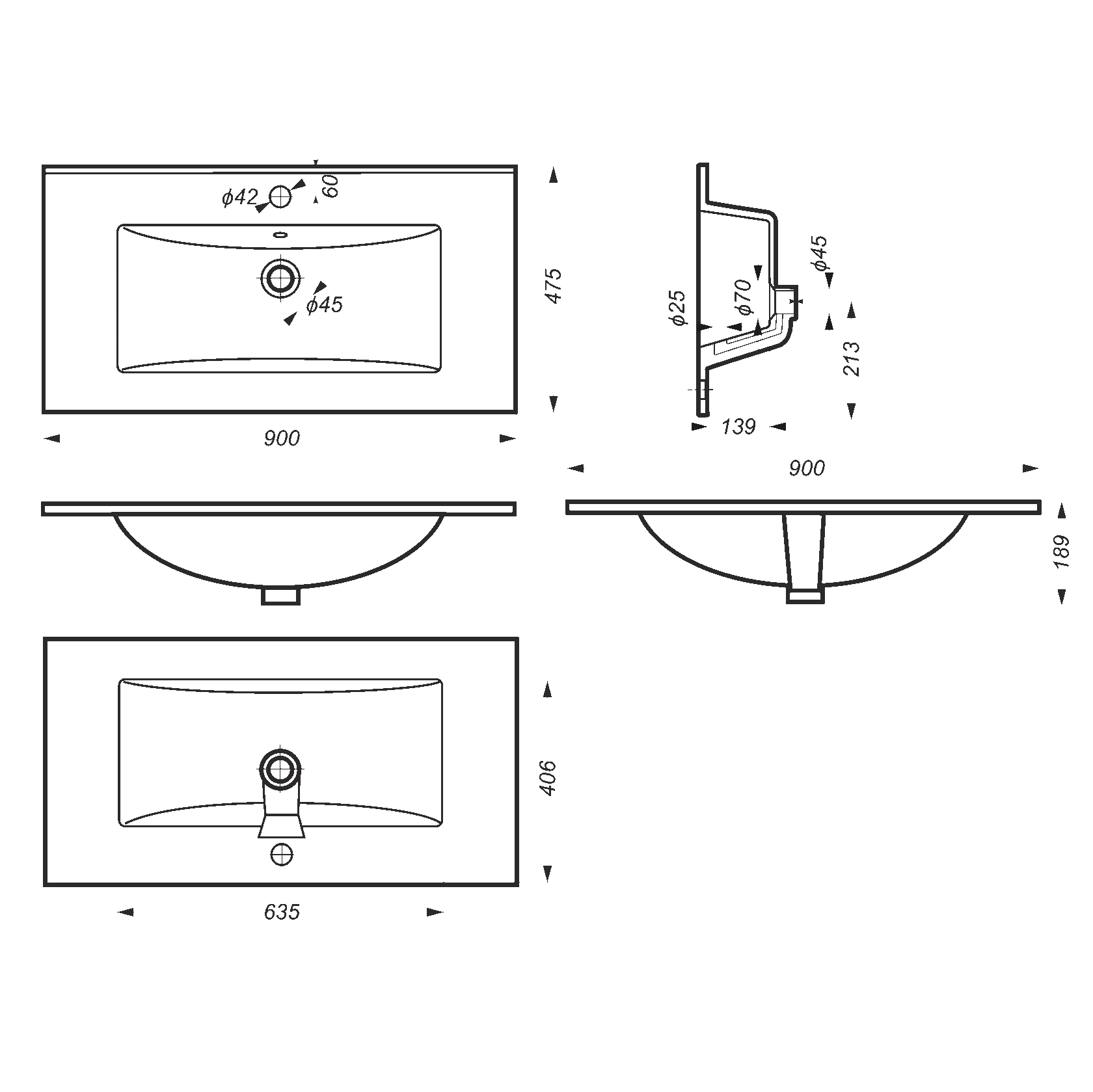 Раковина Sanita Luxe Quadro WB.FN/Quadro/90-C/WHT.G/S1 90 см купить