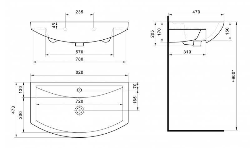 Тип: раковиныПо форме: полукруглыеРазмер, мм (ШxГxВ): 813x470x200Размер в упаковке, мм (ШxГxВ): 843x500x230Цвет: белыйВес с упаковкой, кг: 20По монтажу: мебельнаяМатериал: керамика