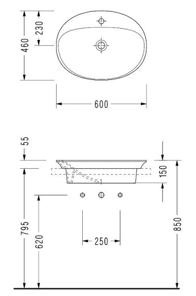 Раковина Serel Hera для установки в столешницу 60 х 46 см, белый, HR34TXS110HОсновные характеристики: