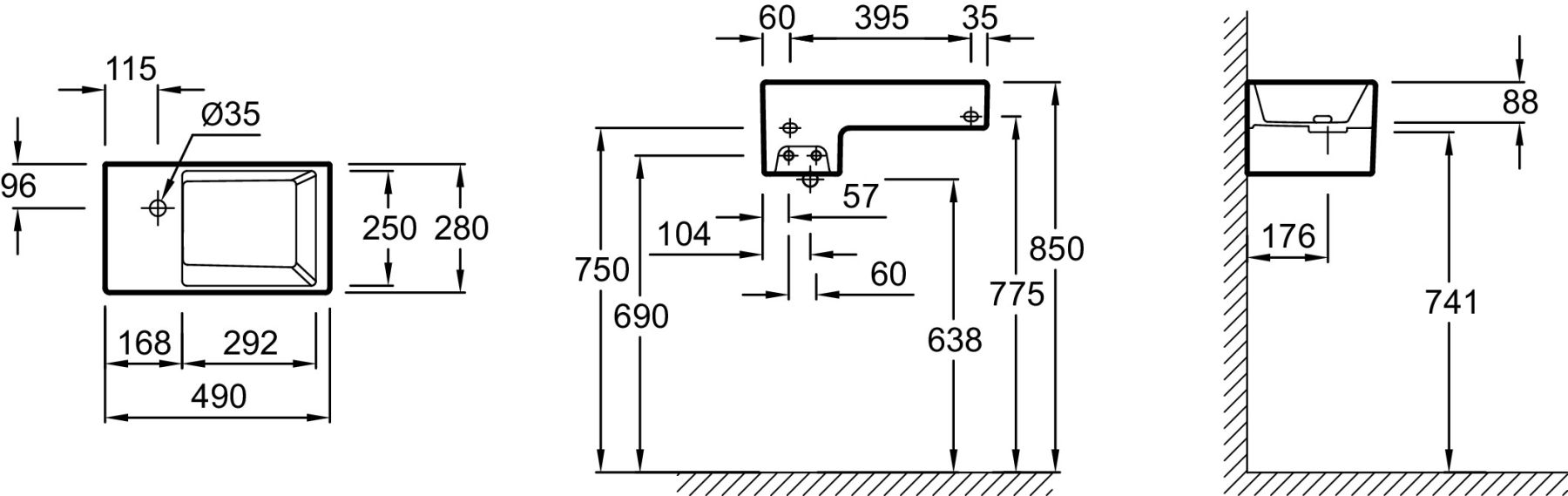 РАЗМЕТКА СВЕРЛЕНИЯ ОТВЕРСТИЯ ДЛЯ СМЕСИТЕЛЯ: С 1 отверстием для смесителя