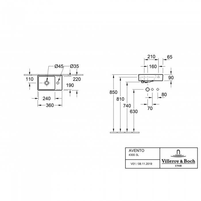 Раковина Villeroy Boch Avento 36 x 22 см 43003L01 купить