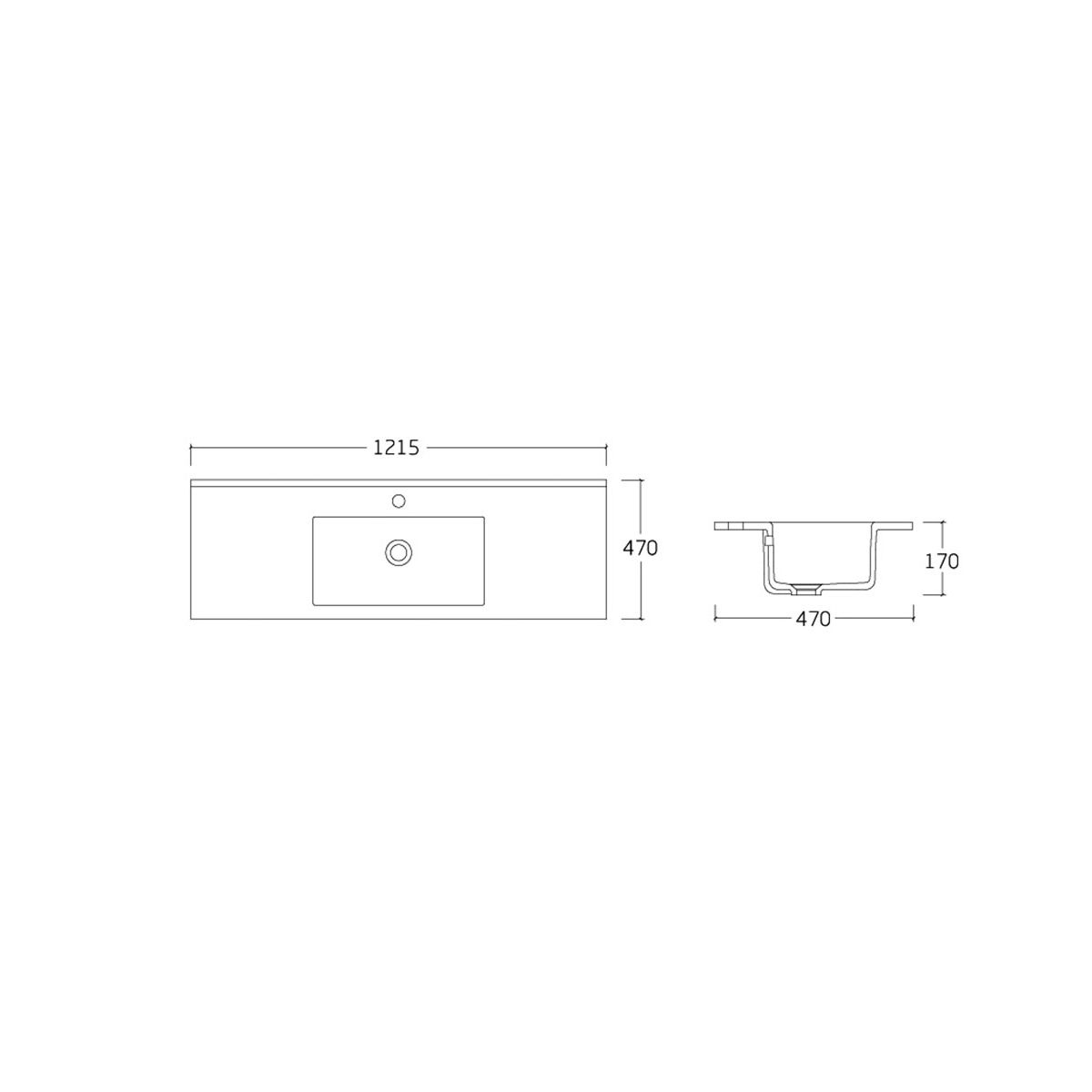 1215х470х170Отверстия под смеситель: