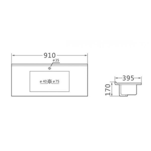 910x395x170Отверстия под смеситель: