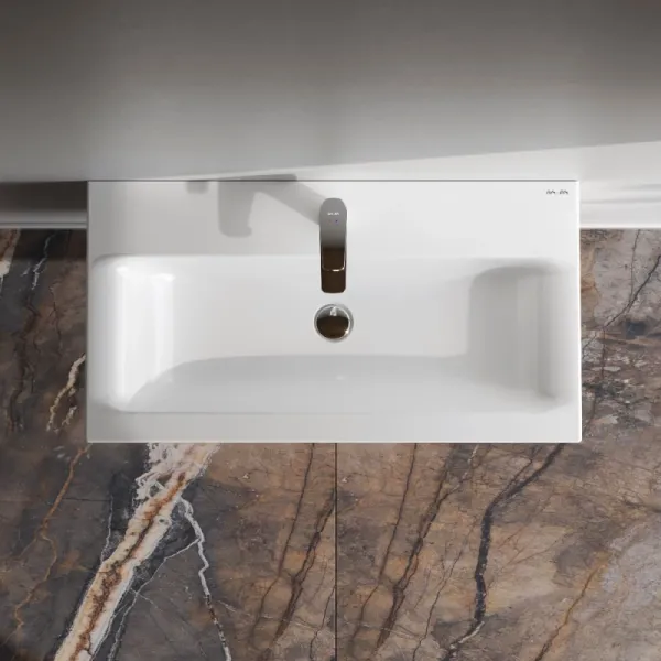 Раковина встраиваемая Am.Pm Gem M90WCC0802WG 81 см белыйРаковина для мебели Am.Pm Gem 80 M90WCC0802WG. Глубина всего 42 см при максимальной глубине чаши! Изготовлена из стекловидного фарфора Ширина раковины: 80 см. Цвет: белый глянец. Комплектация: раковина, инструкция