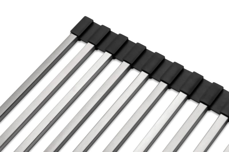 Ролл-мат для кухонных моек, артикул R375-BS330*375 ммРолл-мат STEP R375 от Paulmark — это универсальный и многофункциональный ролл-мат 330*375 мм из нержавеющей стали. Он может быть использован в качестве подставки для горячей посуды, сушилки для овощей и фруктов или коврика для разморозки продуктов. Благодаря двусторонним силиконовым наконечникам, ролл-мат защищает поверхность и может быть размещен на столешнице, крыле мойки или в специальных направляющих чаши кухонной мойки.