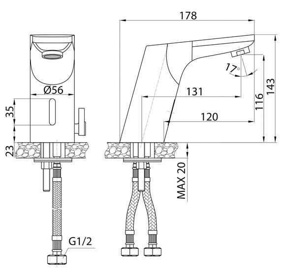 Питание датчика смесителя с сенсорным управлением производится либо от сети, либо от батареек типа АА (не входят в комплект поставки).