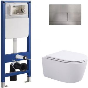 Сет Sintesi SIN-CCI-SMP-101,SIN-FB-DSS-507,SIN-TS-DNT-191: инсталляция кнопка смыва нержавеющая сталь унитаз Dante белый крышка-сиденье белая купить