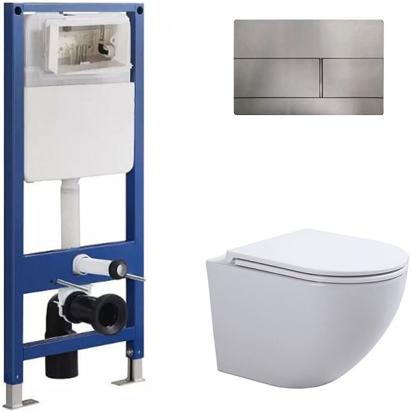 Сет Sintesi SIN-CCI-SMP-101,SIN-FB-DSS-507,SIN-TS-EVI-151: инсталляция кнопка смыва нержавеющая сталь унитаз Evi белый крышка-сиденье белая купить
