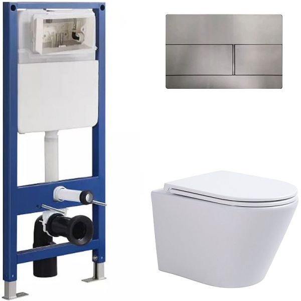 Сет Sintesi SIN-CCI-SMP-101,SIN-FB-DSS-507,SIN-TS-SLR-181: инсталляция кнопка смыва нержавеющая сталь унитаз Essler белый крышка-сиденье белая купить
