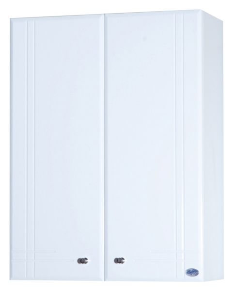 Шкаф оснащен двумя распашными дверцами с петлями без доводчиков и внутренними полками, которые обеспечивают удобное хранение косметики, средств гигиены и аксессуаров для ванной. Благодаря навесному типу установки, шкаф экономит место на полу и облегчает уборку помещения.