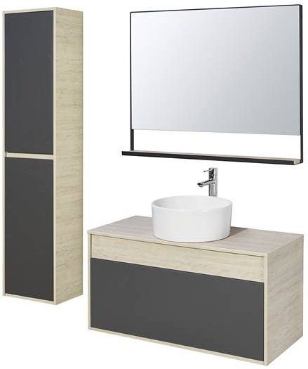 В качестве дополнительного места для хранения можно использовать шкаф-колонну с двумя отделениями. Фасады, как и у тумбы, выполнены в цвете графит с эффектом perfect touch и снабжены удобными интегрированными ручками. За фасадами находятся полочки, на которые можно разместить все необходимые принадлежности. Верхняя и нижняя полки имеют возможность регулировки по высоте.