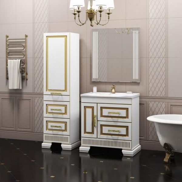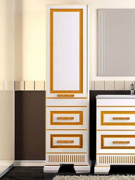 Шкаф-колонна Opadiris Оникс 50 L Z0000005741 Белый глянцевый с золотой патиной купить