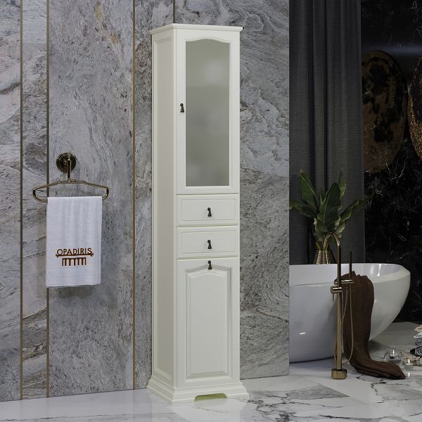 Шкаф-колонна Opadiris Риспекто 40 L 00-00005836 с бельевой корзиной Слоновая кость купить