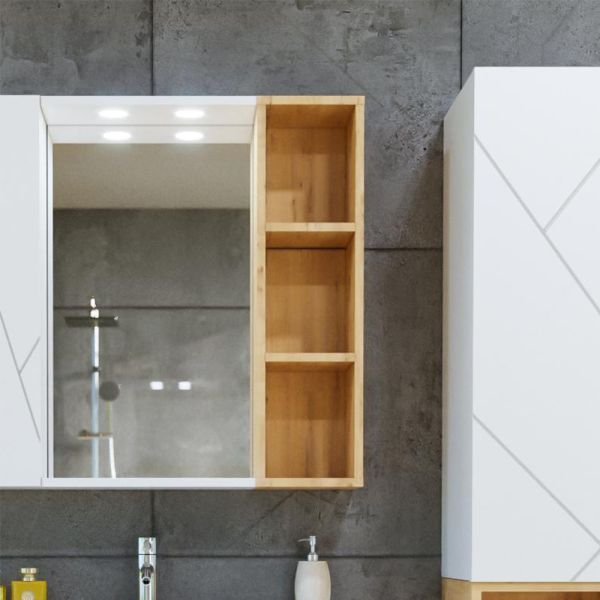 Основное преимущество шкаф заключается в его вместительности. Удобные полки и ящики позволяют организовать пространство и разместить все необходимое: от косметики до бытовых принадлежностей. Каждая деталь продумана для удобства использования, что делает утренние и вечерние ритуалы более приятными.