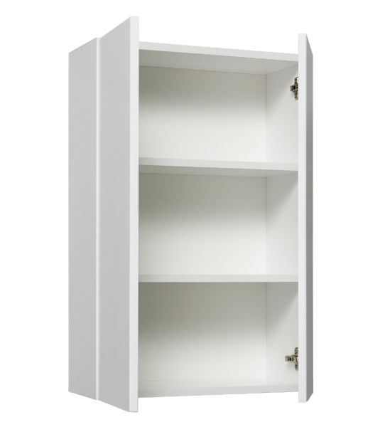 Шкаф навесной с двумя распашными дверками. Внутри - две встроенные полки. Петли со встроенным доводчиком, ручки - 2шт, навесы 2шт.