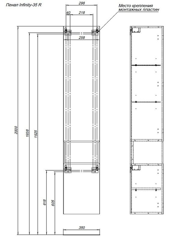 Размеры (ШхВхГ): 350х1800х321 мм.